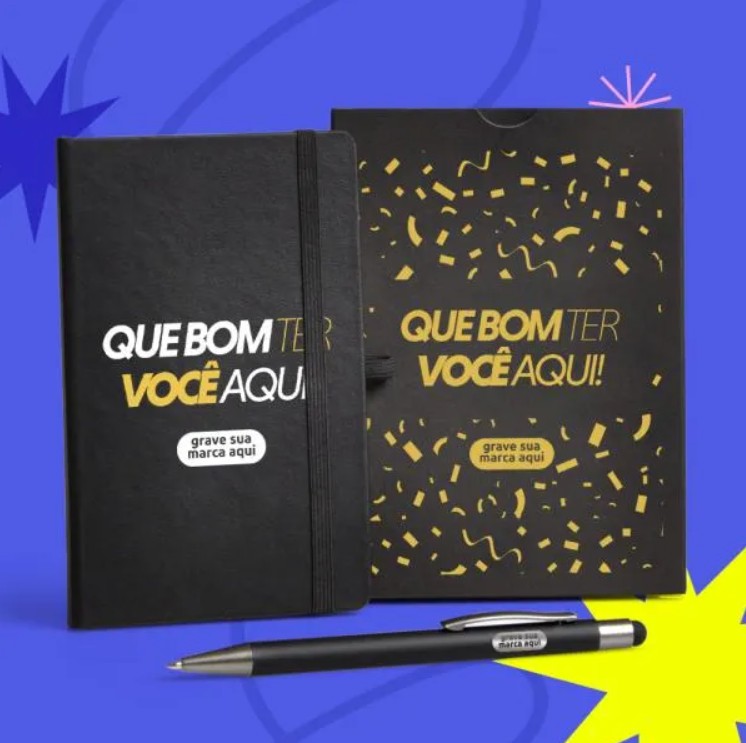Sugestão de personalização: Uma gravação em silkscreen na capa e laser na caneta