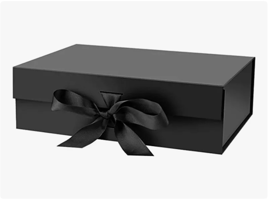 Caixa Embalagem para Presente, com laço de cetim e imã para fecho.