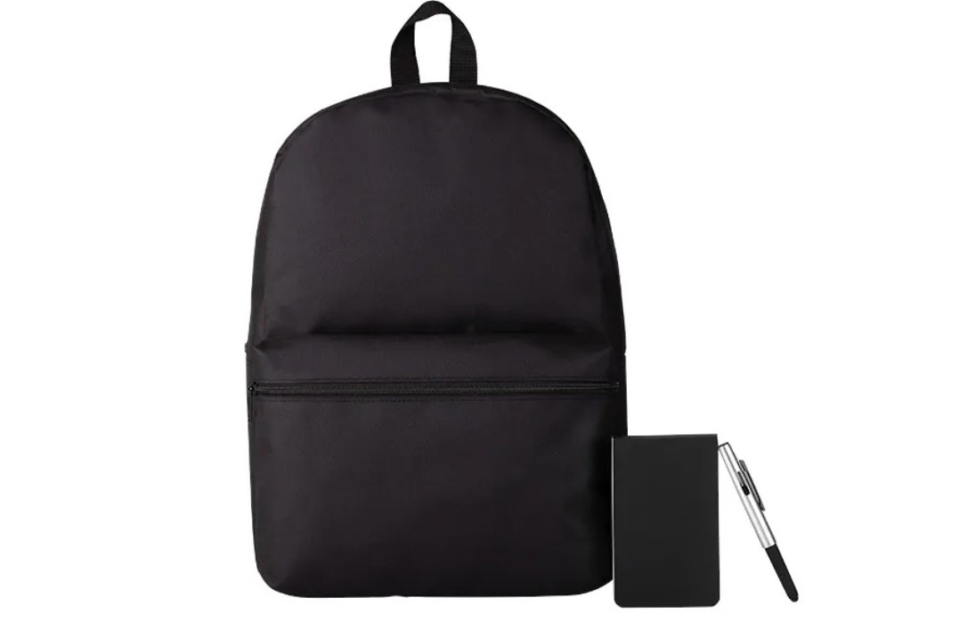 Mochila preta confeccionada em Polyester 600D.