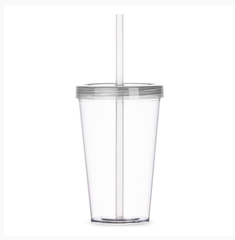 Copo plástico de 600ml com tampa rosqueável e canudo biodegradável.